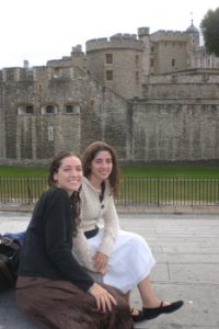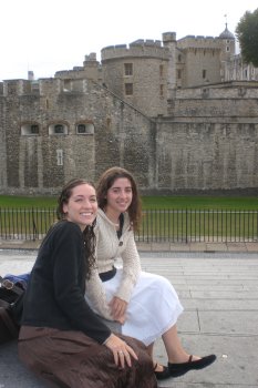 We got up early Thursday morning and headed out the door by about 7:55am, taking the bus to Tower Hill. I’d read that it is best to go right when the Tower opens to beat the lines. That was fabulous advice! We arrived about 15 minutes early, and I took this picture of Lindsay and Sarah waiting in front of the Tower for the ticket booth to open. The was overcast, making things just a bit on the cool side, but not unpleasantly so.