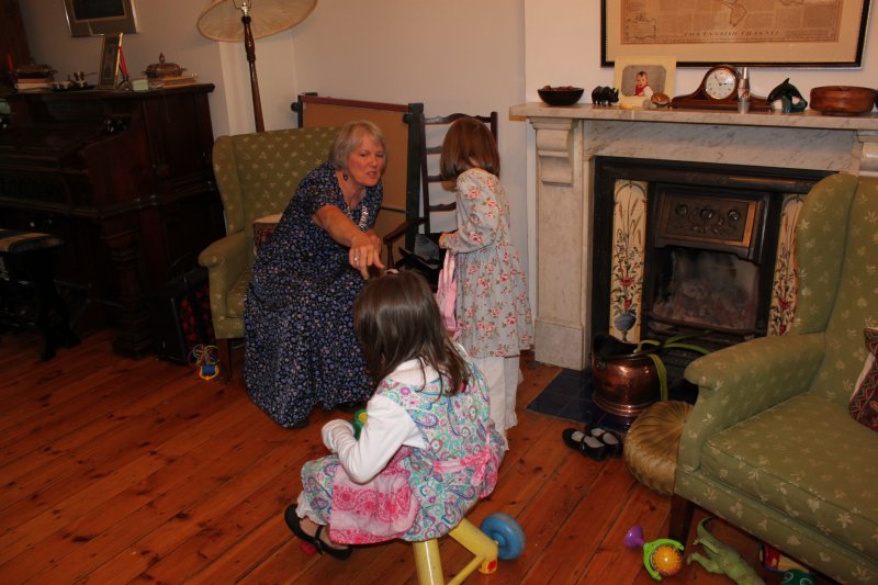 Sarah and I have corresponded for years and love to meet up whenever we can…My girls loved playing with new friends as “Grammie” looked on…We even cajoled Jenny into coming along for the visit. Here she entertains my littlest one…