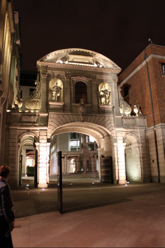 We walked around the front of the church to head back toward the St. Paul’s underground station, stopping for a moment to snap some pictures of Temple Bar, one of the older entrance gates into the city of London. It was dismantled in the 19th century and sold when it became impractical for modern vehicular traffic. It ended up languishing in a forgotten garden before the City of London purchased it back and erected on this spot in 2004:
