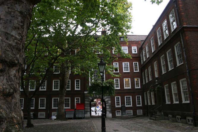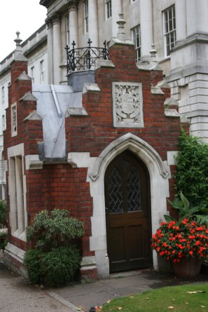 We walked briskly down the street and entered the enormous cemetery gates. I was pretty sure we were at the wrong end of the cemetery, as this did not match my map, so I stepped into the “Friends of Brompton” office for assistance. The chap who came out positively pounced on the key and exclaimed, “We don’t have a copy of that; any chance you could have a duplicate made?” I promised I’d ask and followed his directions through the cemetery to the other side, passing the gigantic cemetery office in the center: