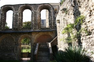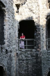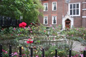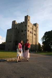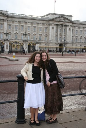 We had a lovely time going through the rooms and halls of the palace, though we had to carry Benjamin’s stroller up and down several flights of stairs. Good exercise! There is a current exhibit about the last debutantes presented at court (to Queen Elizabeth II in 1958). The debutantes donated many of their gowns, stockings, gloves, and even lipstick to the exhibit. There’s a fun room where you can try out dance steps of the 1950s or learn a proper curtsey (the deep, bending kind you give to royalty at court). All in all, it was a fun stop, and I know our fall tour folks are going to enjoy it, especially as the gardens will be fuller then (they were just stirring to life while we were there).