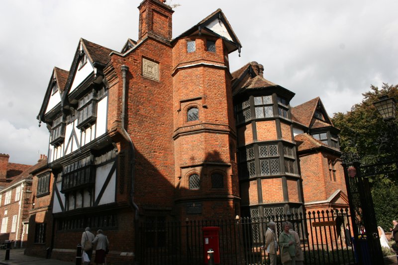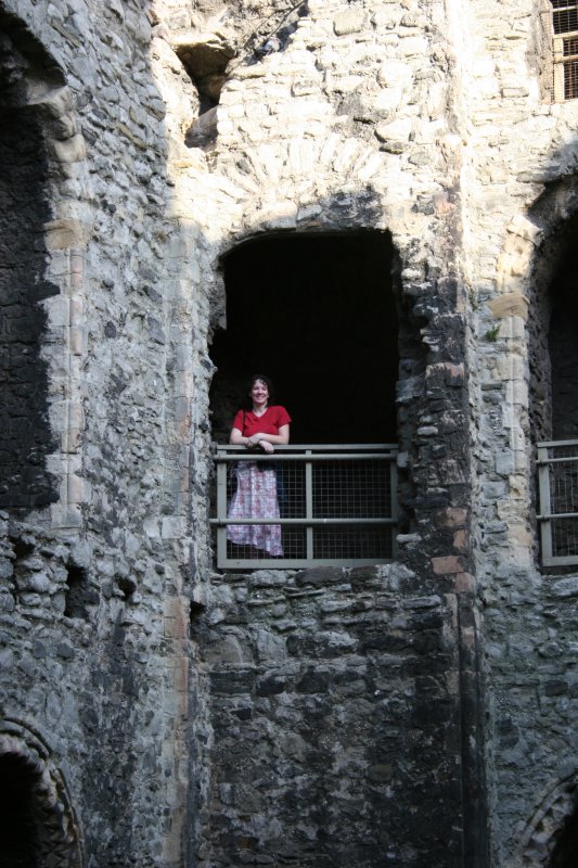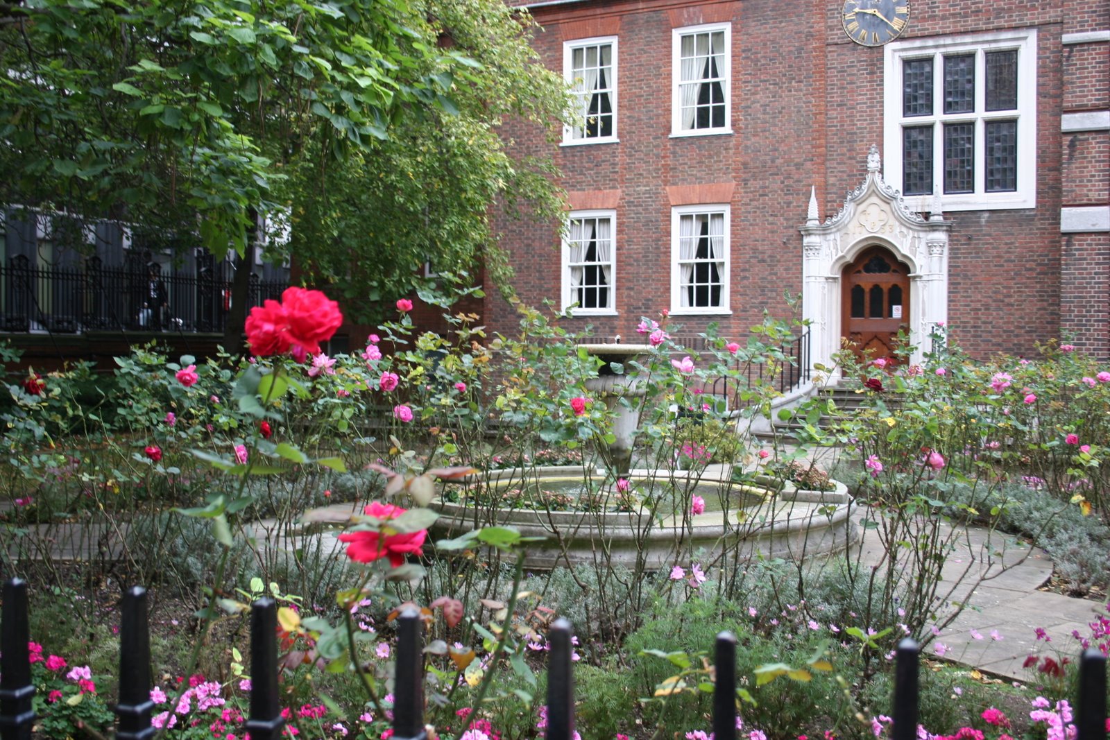 After a lovely hour’s visit, we parted ways, Bria, Benjamin, and I heading into the Palace for our short tour. Photography is, unfortunately, not allowed inside the palace, which is a shame. We skipped the audio tour, as we were short on time, but I hear it is excellent, and that’s what we’ll be doing this fall. At right you see the front exterior of the palace behind its low brick wall (close-up below). It has a wing to the far left as well. The interior has its grand spaces and amazing rooms, but when you see the Princess Victoria’s bedroom, you’re rather astonished that it isn’t grander. Then you recall her rather unhappy childhood and realize it’s just as it would have been. In one room is an exact replica of the dress Victoria wore on her first day as queen when she met with her privy counselors. It’s a black dress (mourning for King William) with a white pelerine–really very pretty. And when you see it, you realize afresh how small Queen Victoria was. She’d have come just above my shoulder.