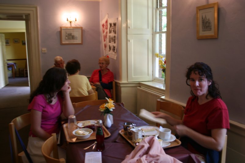 We had arrived a few moments early, so we took our seats to wait for Suzi and Anne, who arrived only a tick or two later — perfect timing! Somehow in all the fun of greetings and eating, I totally forgot to get a photo of us together. Phooey. Suffice it to say that lunch was delicious and dessert exquisite. I had the traditional beef stew, while Bria had a rich broccoli soup. For dessert, Bria tried the raspberry meringue, and I had the special “Orangery Cake”–lemon and orange with citrus frosting. And, naturally, I added a pot of Earl Grey to my lunch! It was all prepared perfectly and served beautifully, and the atmosphere so friendly and warm. It will be such a delight to take our entire group to this wonderful place for lunch in the fall! Suzi and I talked over the itinerary, she providing lots of excellent suggestions for our day in Greenwich and talking about settling our museum dates. I told her I hadn’t been able to find Susan at the V&A, and she gave me a look of blank astonishment when I said, “Susan Hunt.” She then reminded me that the name was Susan North, and I felt like such an idiot! So I’d missed our appointment for no good reason–just my bad memory! I wrote an email of apology to Susan that night!