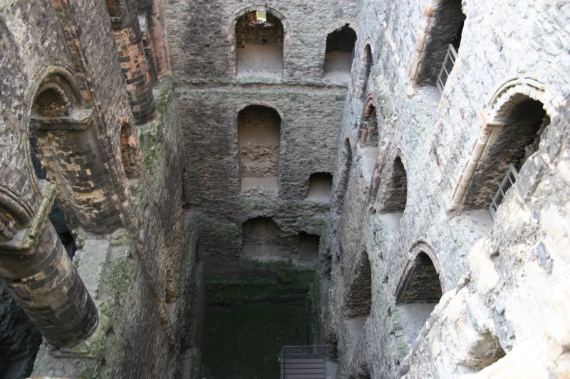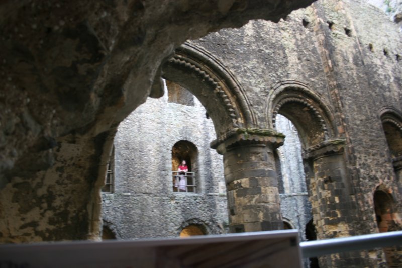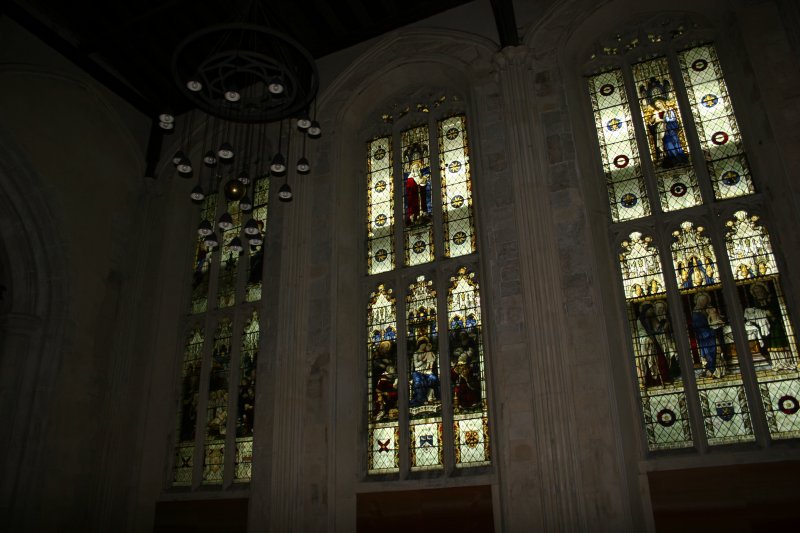 Since I couldn’t get into the tomb, I put my camera through the lower half of the door and photographed the interior, which is exquisite. Below you’ll see the altar, stained glass windows, tall vase, and vaulted ceilings.