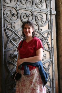 By the time I’d reached Bria and Benjamin, I could see the policeman heading towards us on his bike. It’s a good walk halfway through the cemetery! He came up and held out his hand for the key. I explained that it would turn, but only so far, and I was afraid of breaking it. He mentioned that leaning into the door might help. At any rate, he gave it his best try, but, finally, afraid of breaking the key off the lock, gave up as well, every bit as disappointed as we were not to get inside! He said, “You’d best ‘ave a locksmith out ‘ere to get at the lock, Oi’d say.” I mentioned that my husband would be coming through in a couple of weeks and could have a go at it with WD-40. He thought that might be worth a try. We stood around talking about the tomb for quite a while, and the policeman was extremely knowledgeable about the cemetery and its occupants. Turns out he is an absolute history nut and reads voraciously when he’s not working. He had anecdotes about all kinds of famous people buried in Brompton, about Beatrix Potter, and about all kinds of other historical figures in and around London. It was quite an amazing half hour we spent with him!